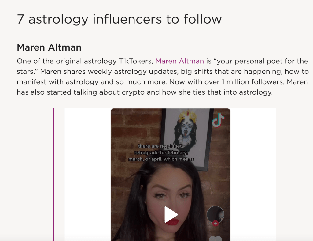 No author (2022), ‘Top 7 Astrology Influencers on Tik Tok’, Izea, viewed 13th September 2022, https://izea.com/resources/astrology-influencers-tiktok/